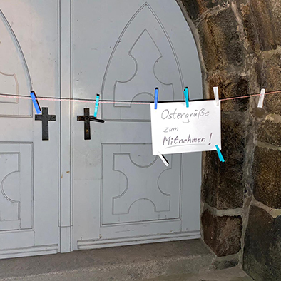 Dieses Jahr haben wir Ostern anders gefeiert - von Ostergrüßen zum Mitnehmen, Kirche vor dem Fenster, Telefongottesdiensten über Livestreams bis Osterlichte to go und Schokogrüßen aus dem Weltladen Kyritz für die Mitarbeiter*innen im KMG Klinikum Kyritz.