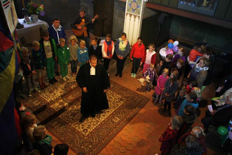 Statt gewohnter Orgelmusik eröffnete Sänger und Liedermacher Jonathan Böttcher den Gottesdienst in der Kirche Cumlosen mit einem frechen Lied aus seinem Repertoire und alle sangen mit. Auch in das Psalmgebet zu Psalm 139 "Von allen Seiten umgibst du mich und hältst deine Hand über mir!" wurden alle Anwesenden mit einbezogen und die vielen Besucher im Vorschulalter verloren ihre anfängliche Scheu. Ein von den Katechetinnen verursachtes "Buchstabenchaos" erinnerte die Kinder wieder an das nun beginnende Lesenlernen in der Schule. Die Predigt, gehalten von Superintendent Günther, hatte das Jesuswort "Lasset die Kindlein zu mir kommen und wehret ihnen nicht, ..." zum Inhalt. Dem Superintendenten gelang es, den Bibeltext, in einer für die kleinen Gottesdienstbesucher verständlichen Sprache herüberzubringen. Dazwischen immer wieder Musik zum Mitmachen, unterstützt von Jonathan Böttcher und Christenlehrkindern unseres Kirchenkreises.