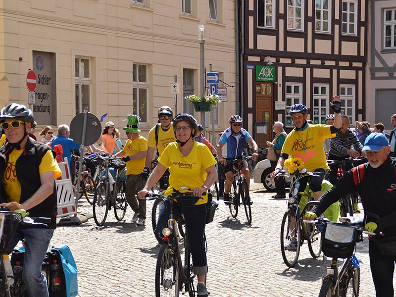 Die erste Etappe der Tour de Prignitz hatte gestern ihr Tagesziel in Perleberg - an der St. Jacobi-Kirche vorbei ging es zum Ziel auf dem großen Markt. Auch Superintendentin Eva-Maria Menard und Pfarrer Peter Radziwill fuhren mit.