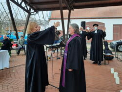 Zum Finale gab es dann noch ein Ständchen von Pfarrer Volkhart Spitzner aus dem Pfarrsprengel Putlitz. Mit dem Lied „Ich mach Station“ erfüllte er die Bitte von Pfr. Kölbel, dieses Lied zu singen. Das Lied begleitet Pfr. Kölbel bereits seit seiner Jugend und sollte am Tag seines Abschieds nicht fehlen.