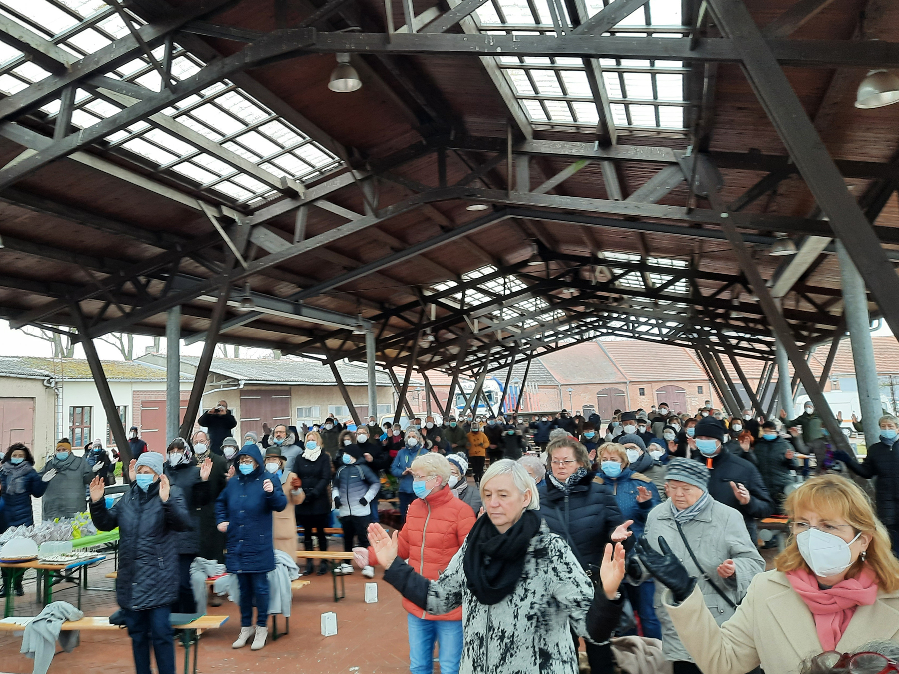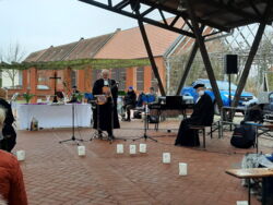 Auch wenn das Wetter kalt und regnerisch daher kam, fanden sehr viele Besucher*innen den Weg auf den Hagenplatz um sich zu verabschieden. Und so wurde es mit Abstand und Maske und coronagerechten Kuchenpäckchen doch ein herzlicher Abschiedsgottesdienst.