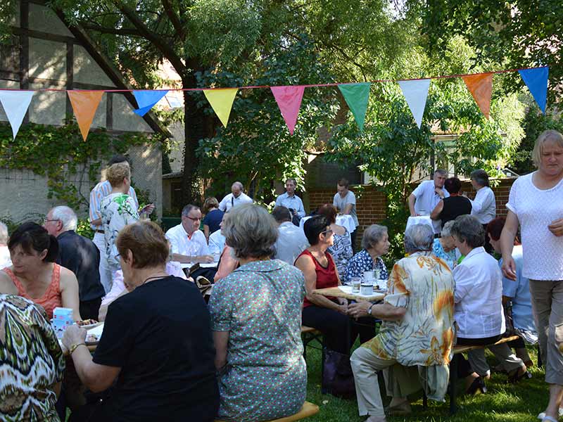 Der amtierende Superintendent Daniel Feldmann dankte Pfarrer Sparre für die vielen Jahre im Dienst der Kirche und Gemeinde, und überreichte ihm die Urkunde, die seinen Ruhestand bekundete. Anschließend kamen die Gäste bei sonnigem Sommerwetter im Pfarrgarten zusammen und konnten sich bei Kaffee und Kuchen verabschieden. Viele Geschenke wurden dem Eheparr Sparre mit auf dem Weg gegeben, sowie die besten Wünsche für die Zukunft.