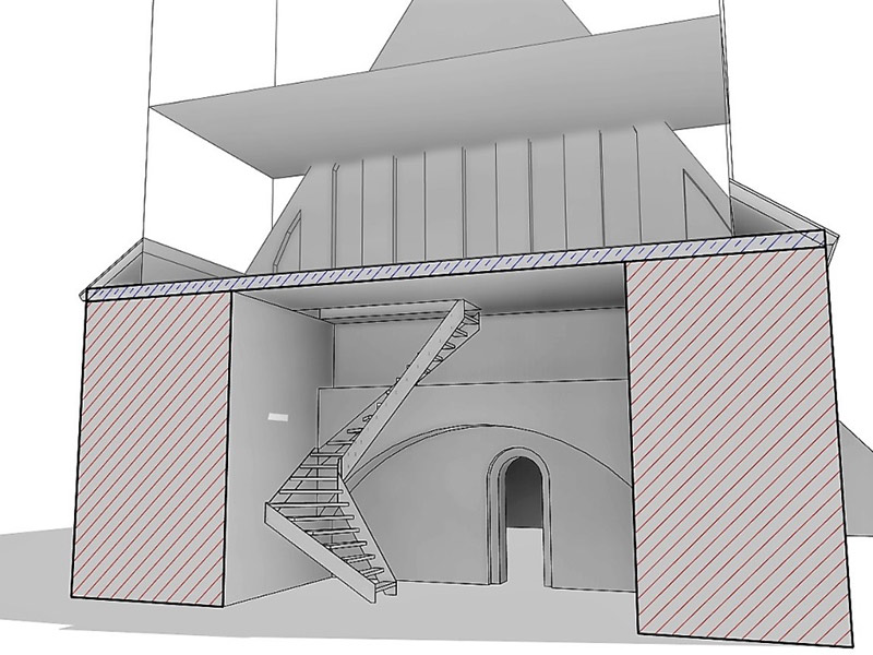 Zurück zum Bauvorhaben: Inzwischen konnten einheimische Firmen den Turmstumpf statisch ertüchtigen, sodass er die Last des hölzernen Aufbaus tragen kann. Das amtlich vorgegebene Vergabeverfahren läuft weiter für die nächsten Gewerke und wenn alles klappt, könnten Ende des Jahres die Arbeiten im Außenbereich (d. h. die Zimmerer- und Dacharbeiten) abgeschlossen sein.