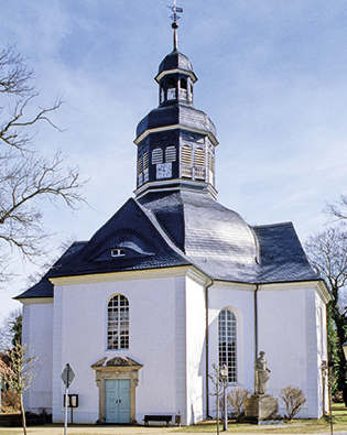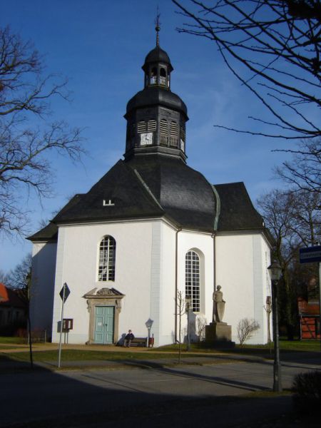 Nachdem 1666 die alte Kirche abgebrannt war, wurde 1673-1696 die neue von Anton Reinhardt als Zentralkirche in Form eines griechischen Kreuzes errichtet (erste Zentralkirche der Mark). Ursprünglich St. Georg genannt, trägt sie jetzt den Namen Kreuzkirche. Über achteckigem Kuppeldach ist ein achteckiger Turm mit geschweifter Haube und geschlossener Laterne. Auch der Hauptraum ist achteckig und hat vier kurze Kreuzarme. Die schlichte Gliederung durch Eckbänder und hohe rundbogige Fenster ist wirkungsvoll.