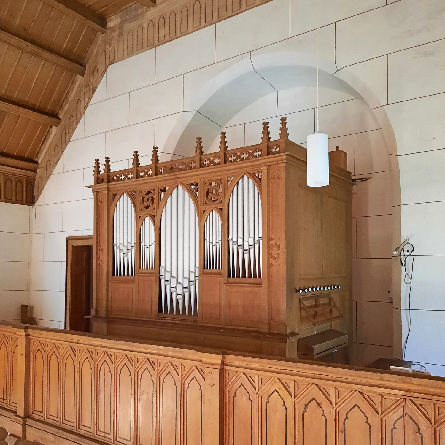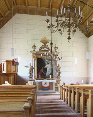 Im Turm läuten eine 1893 aus Bronze gegossene und eine 1962 aus Stahl gefertigte Glocke.