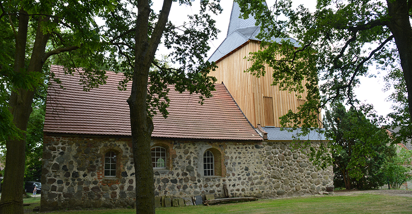 Der ehemalige spätgotische, holzverkleidete Kirchturm musste in den 1970er Jahren wegen Bauschäden bis zur Traufhöhe abgetragen werden. 2016/17 konnte er neu errichtet werden. Er beherbergt jetzt einen multifunktionalen Versammlungsraum mit WC und Teeküche. Außerdem konnten die Glocken wieder an ihren Platz verbracht werden. Diese Baumaßnahme wurde unter anderem mit Mitteln der Europäischen Union (LEADER+) gefördert.