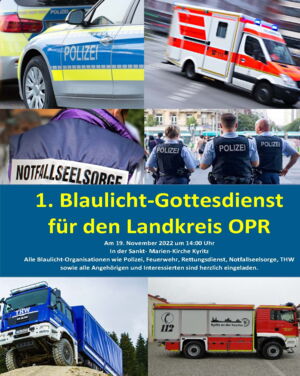 Am 19.11.2022 findet um 14.00 Uhr der erste Blaulichtgottesdienst für den Landkreis Ostprignitz-Ruppin in der St. Marienkirche in Kyritz statt.