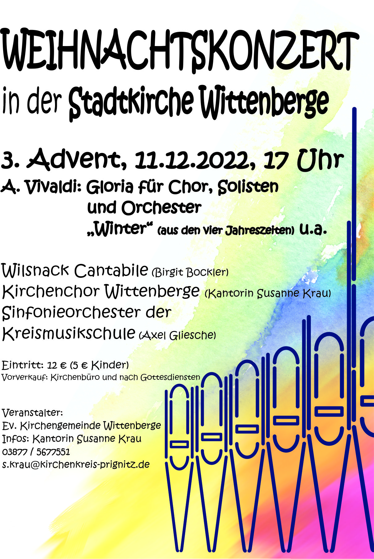 Herzliche Einladung zum Weihnachtlichen Chorkonzert in der Stadtkirche Wittenberge. Am 3. Advent, den 11. Dezember 2022 um 17 Uhr erklingt das Gloria für Chor, Solisten und Orchester "Winter".