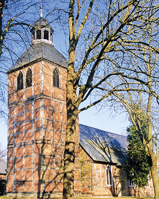 Fachwerkbau von 1746 (Inschrift in Wetterfahne) mit quadratischem Fachwerkturm von 1745 (Inschrift am Türsturz im Westen) nach Umbau der dritten Kirche an dieser Stelle. Turm mit geschweiftem Dach und offener Laterne mit Schieferdeckung. Teile des Ostgiebels und des Dachwerks des Vorgängerbaues von 1592 (d). Putzportal an der Südseite. Neugotische Spitzbogenfenster von 1875. Instandsetzungen 1958, 1963, 1974 und 2008/09.