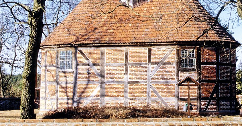 Reizvoller kleiner Fachwerkbau, nach neuesten Erkenntnissen etwa 1692/95 erbaut, vermutlich an Stelle eines Vorgängerbaus. Nach Osten und Westen polygonal geschlossen, auf der Dachmitte ein verschieferter Dachreiter mit offener Laterne und Schweifhaube; an der Nordseite neugotischer Gruftanbau (seit den sechziger Jahren des 20. Jahrhunderts als Friedhofskapelle genutzt).
